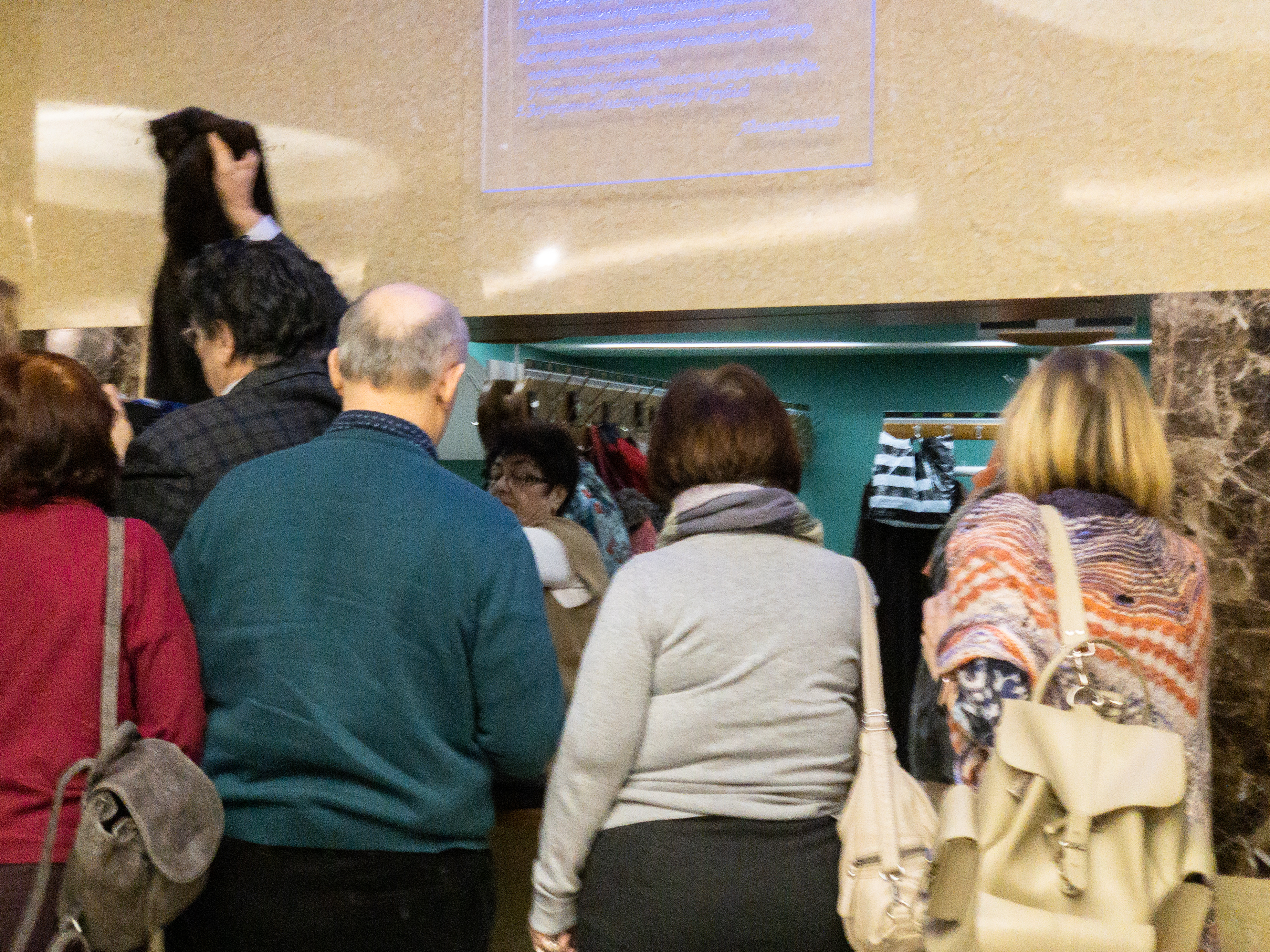 여담으로, 러시아는 추운 나라고, 노보시비르스크의 겨울 밤 날씨는 영하 20도를 가뿐히 넘기 때문에 (당일 -29도로 아슬아슬하게 20도선 유지) 외투가 두껍고, 실내에선 반대로 석유가 나는 나라답게 아주 따듯하게 난방을 때기 때문에 외투가 걸리적거립니다. 오히려 4월에 애매한 날씨에 난방을 안 때게 되면 실내에선 고비라고 하더라구요. 어쨌든 그래서, 건물마다 외투보관소, 가르지롭гардеров이 있습니다. 웬만한 식당이나 공공건물에서는 가르지롭에 외투를 맡기고 번호표를 받아가는 게 보편적인 문화입니다. 사실 한국도 기후는 비슷하지만, 이런 문화는 없어서 조금 낯설기도 합니다. 외투 보관소의 모습은 보통 아래와 같은데, 사진을 참조해주세요.