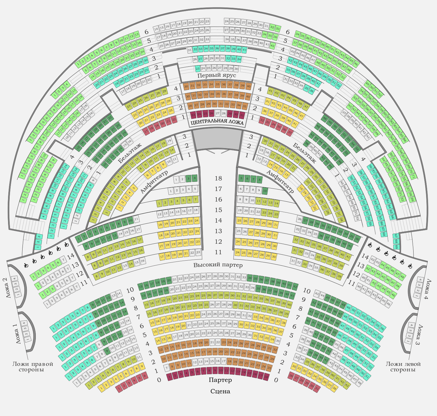 자리는 제일 위, First Circle(Первый ярус)였어요! 제일 싼 자리 중 하나지만, 오히려 음악도 잘 들렸어요. 물론 무대랑은 꽤 멀어서 자세한 무대 속 인물들의 동작은 보이지 않았지만, 전체적인 무대 동선을 볼 수 있는 자리이기도 했습니다. 물론 Центральная ложа가 무대 전체 조망엔 가장 좋고, партер 0열이 상세 동작에 집중하는데 더 좋겠지만, 우리는 빈털털이니까요!