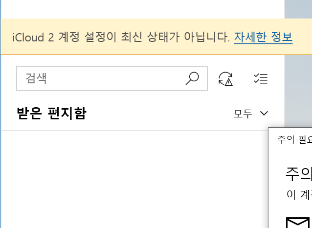만약 윈도우에서 설정 등록시 일반 Apple 암호로 로그인하면, 얼핏 등록이 된 것으로 보이지만 조금 지나면 '계정 설정이 최신 상태가 아닙니다' 라는 문구가 계속 뜨면서 정상적으로 동기화가 되지 않으실 텐데요.