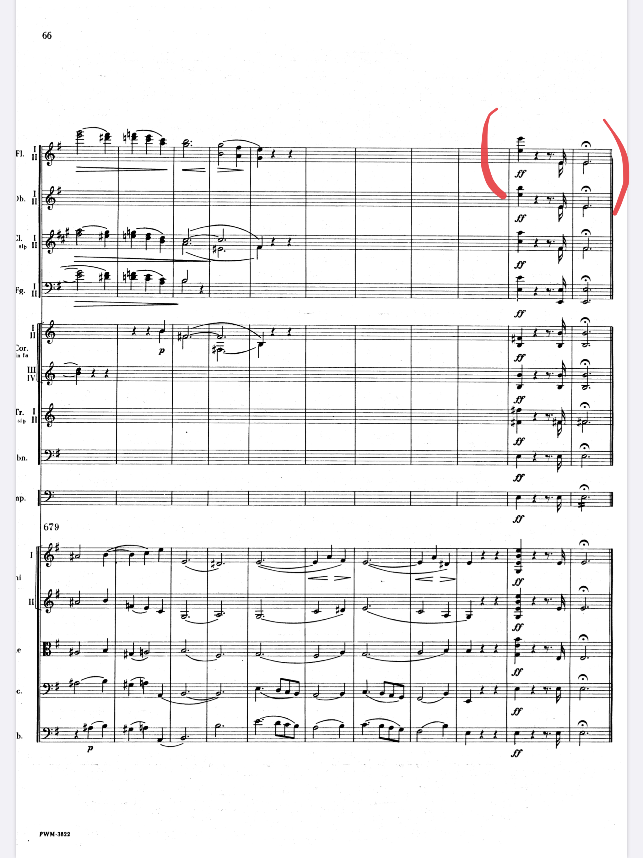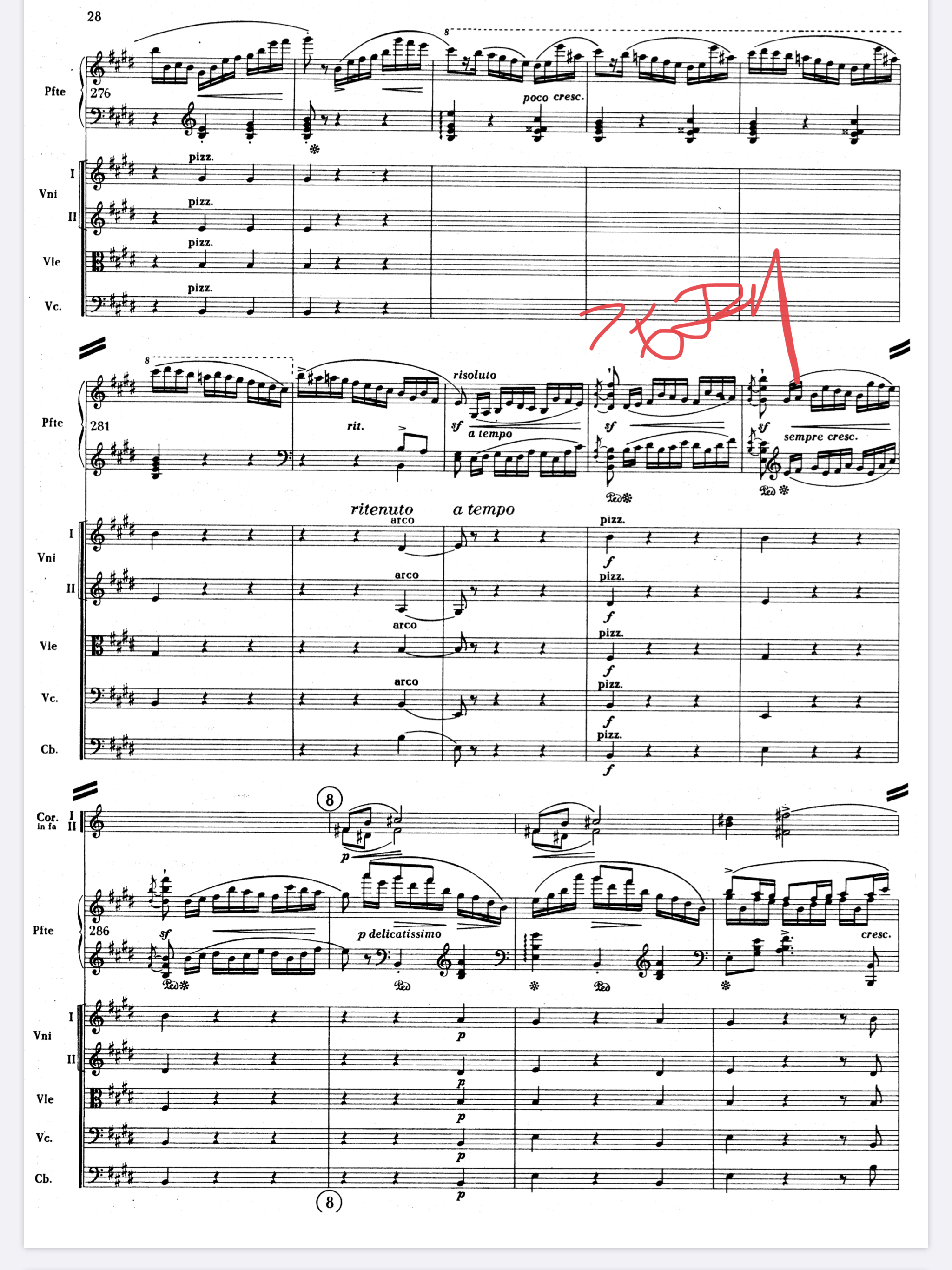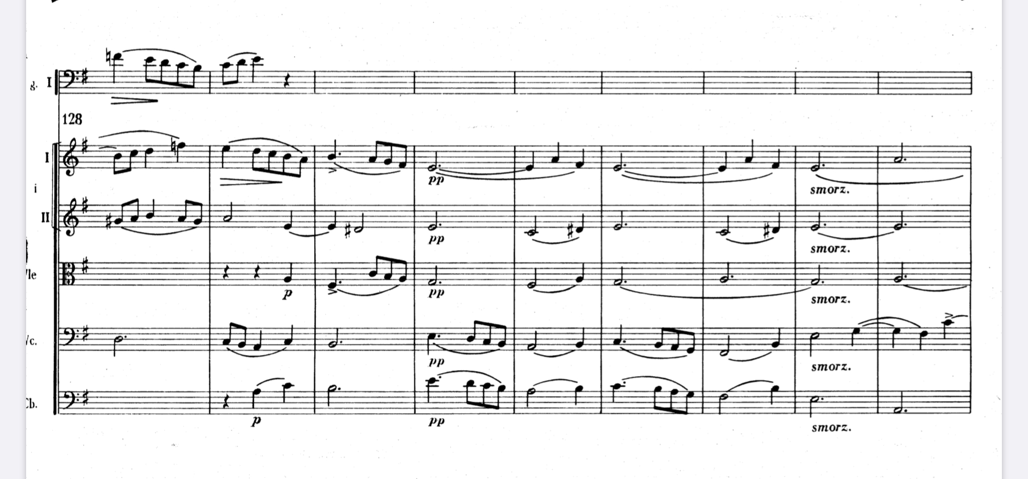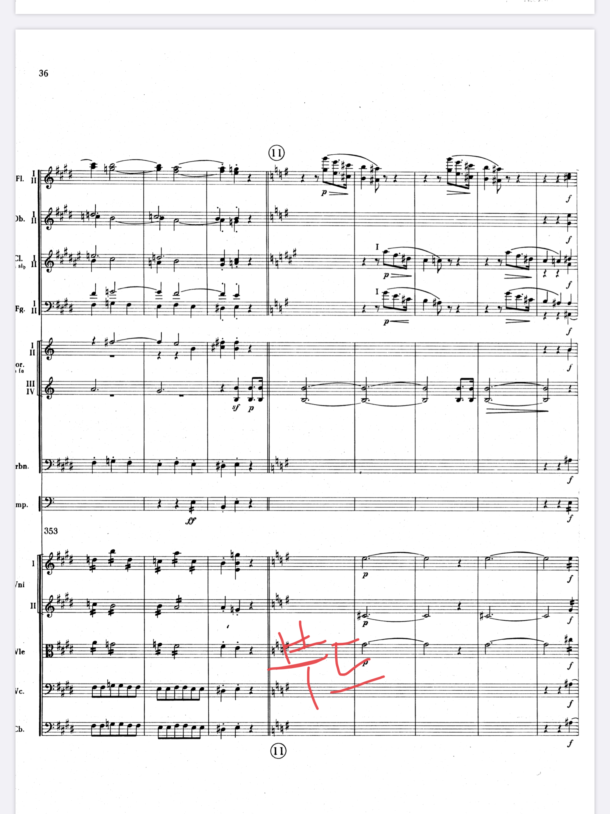 130마디의 8분음표 세개가 제1바이올린을 잘 받쳐줘야 합니다.