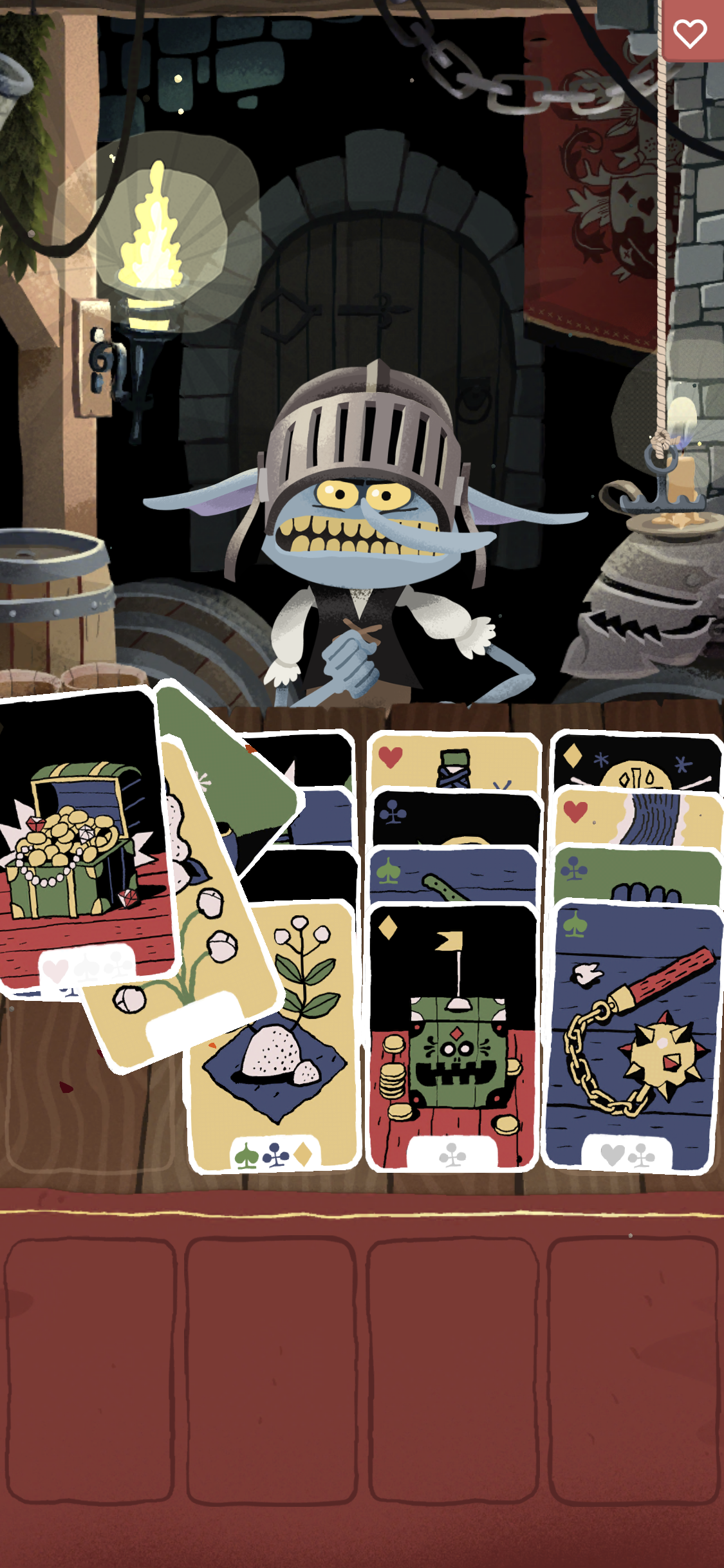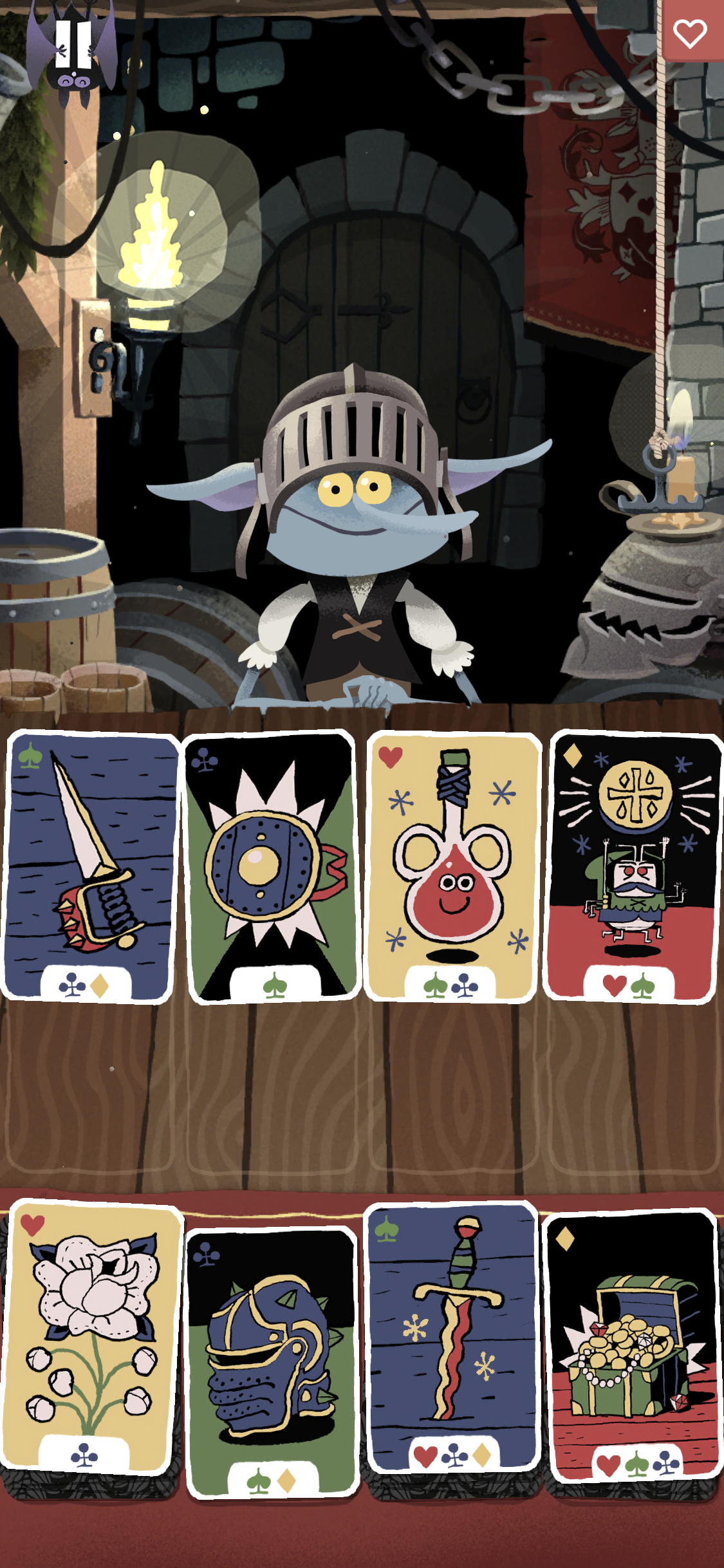 귀여운 트롤 친구가 운영하는 선술집에서 카드 게임을 해볼 수 있어요.