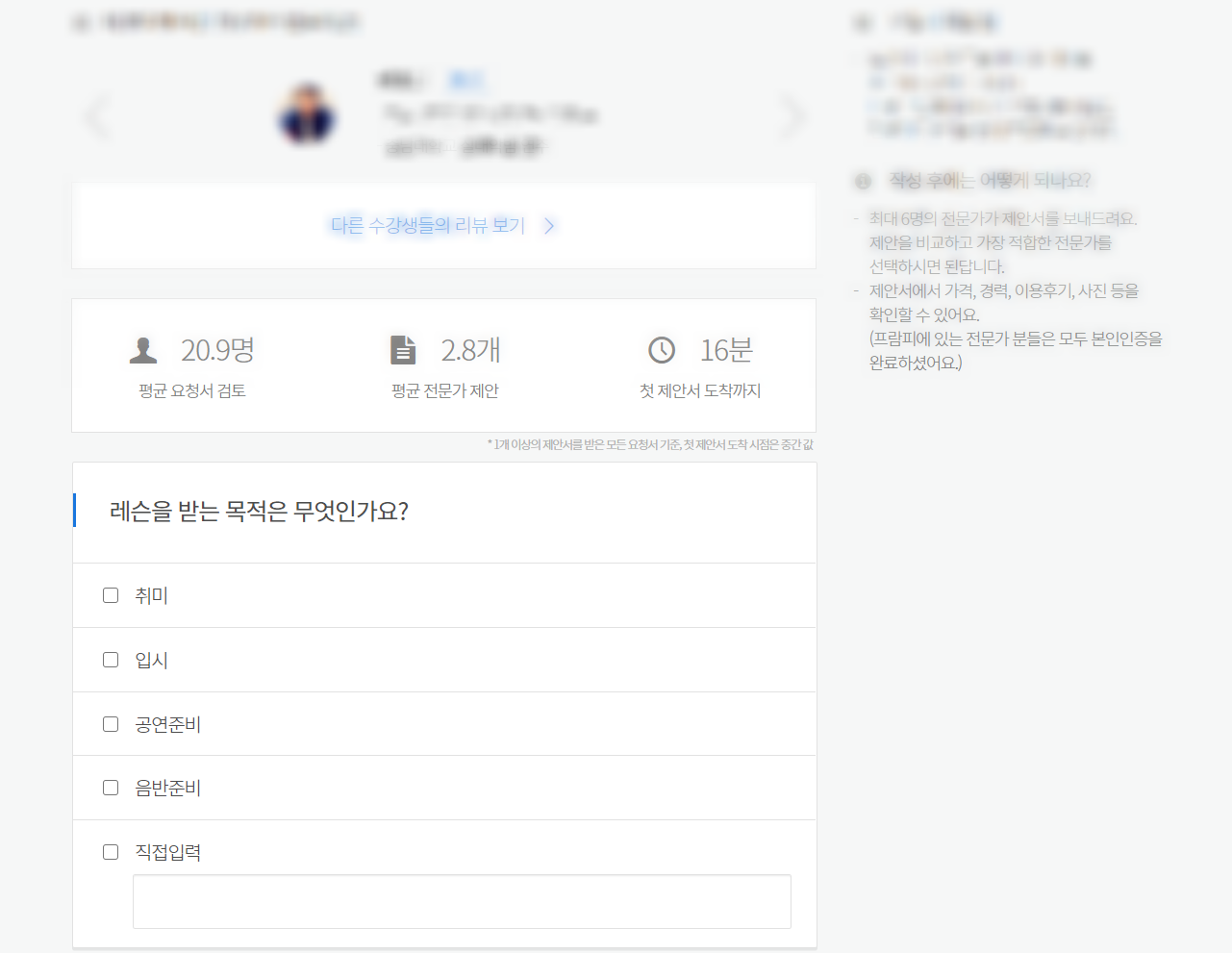 저도 실제로 시범레슨으로 이어진 선생님 가운데 몇 분은 프람피 견적을 통해 만나뵈었던 분이었습니다.
