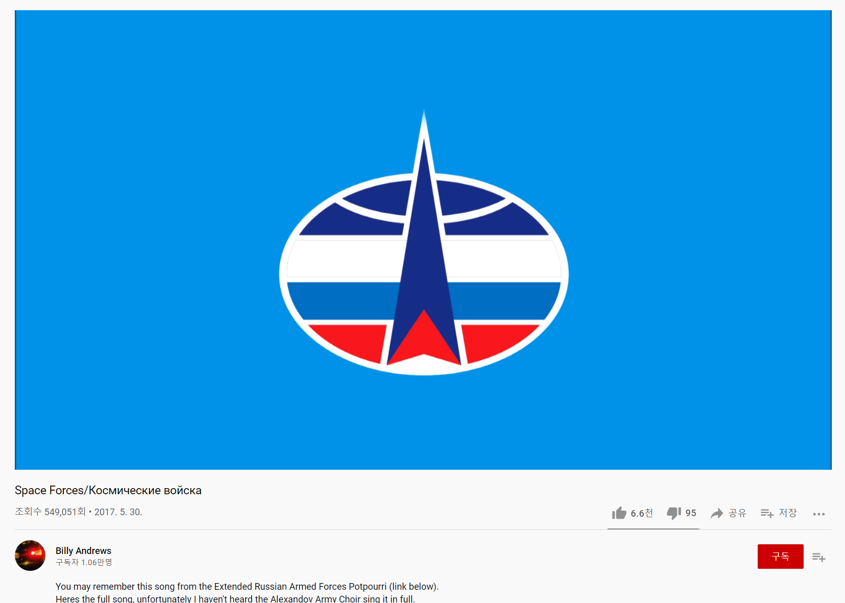 조금 더 찾아보니, 아마 이 곡은 2007년 러시아 우주군 50주년 기념 콘서트를 기해 작곡된 것으로 보입니다. 알렉세이 고만(А. Гоман)과 우주군 합창단이 같이 부른 것인데, 위의 Billy Andrews 채널 영상 또한 Гоман의 음성을 가져왔을 것으로 추정됩니다.