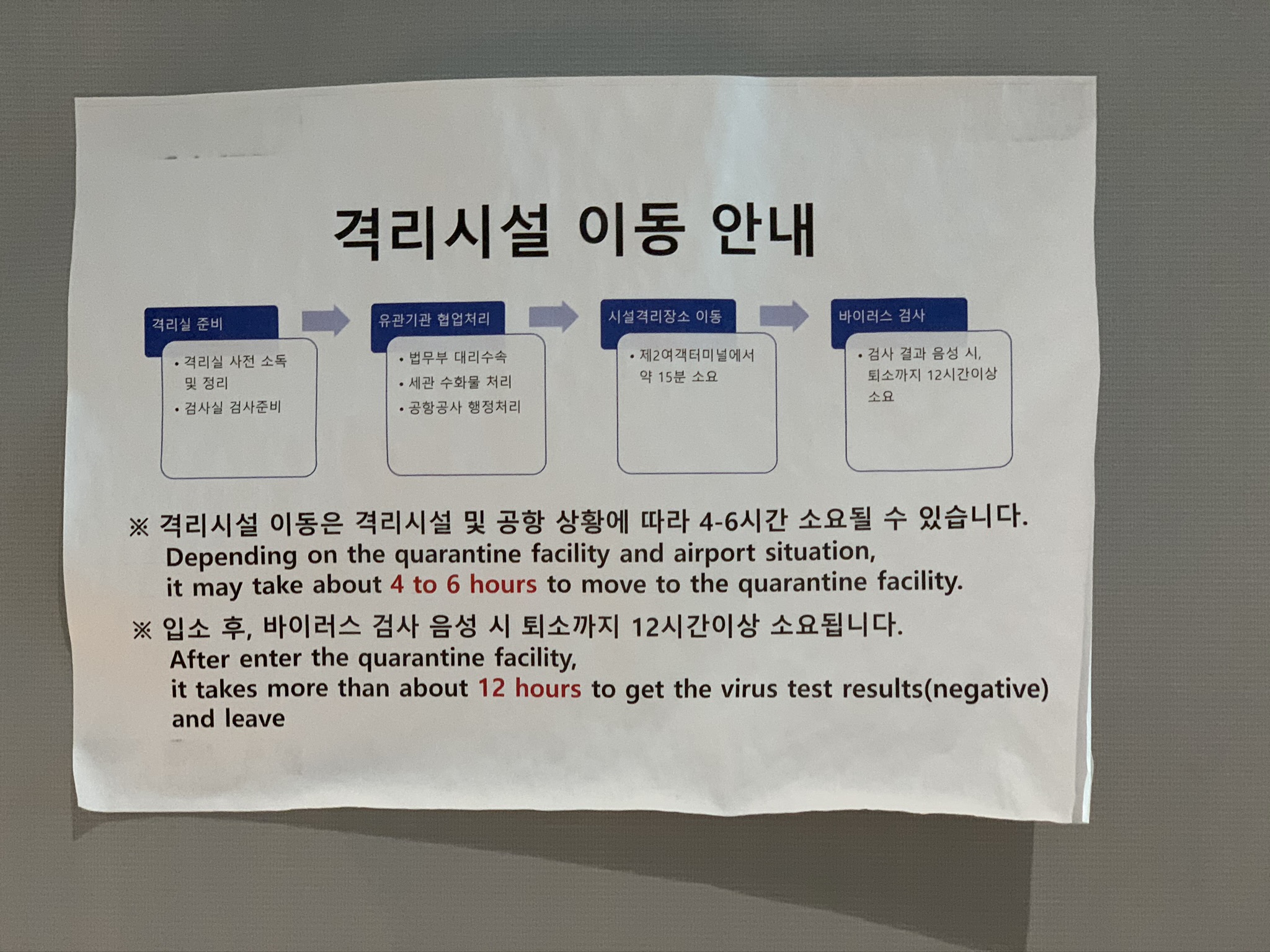 원래 검사자는 별도 격리시설로 이동하는 게 원칙인 것 같았어요. 저희도 대기하면서 '격리시설 이동할 때까지 여기서 대기하겠습니다'라고 들었거든요. 근데 이날따라 격리시설이 준비가 안 된건지, 아니면 아침도착 비행기라 격리자들이 밤을 새우는 게 아니라서 그냥 공항에 있기로 한 건지 저희는 계속 공항에서 대기했어요.
