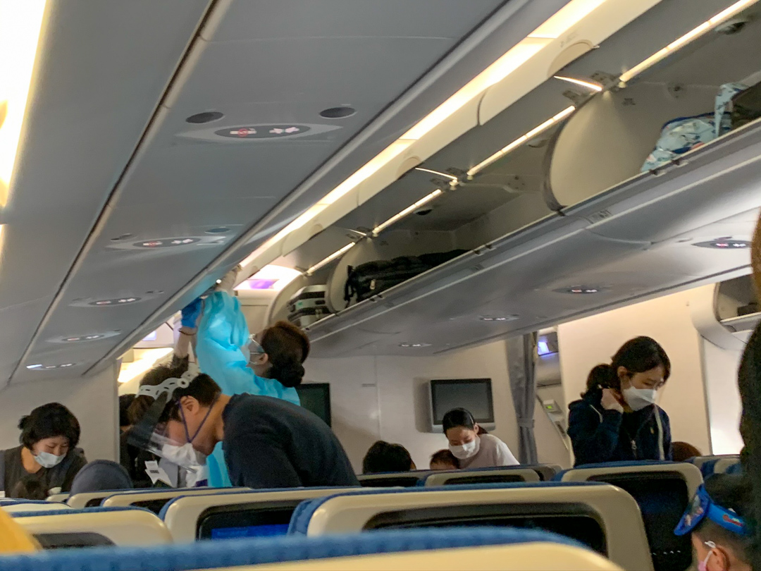 승무원 분들은 저렇게 고글이랑 방진복까지 입고 계셨습니다. 안 그래도 고된 승무원 작업인데 정말 힘드시겠어요...
