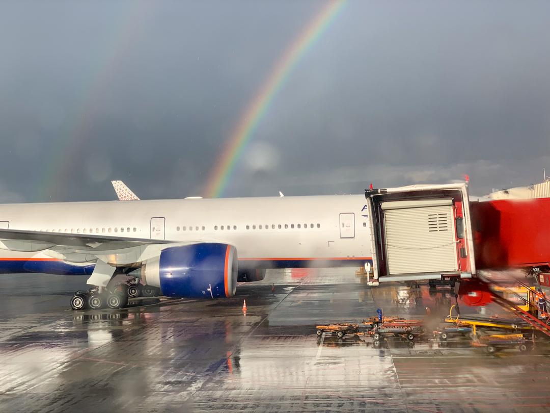 비가 그쳐서 무지개가 걸려 있었어요. 심지어 쌍무지개!