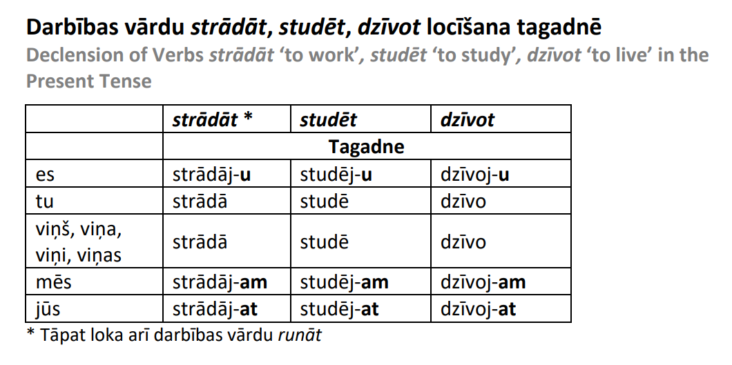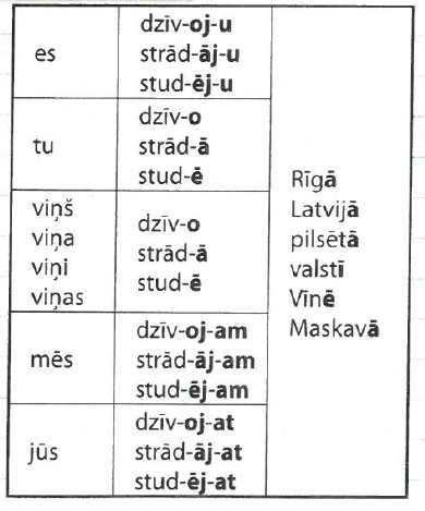 기본형: dzivot(생각하다), stradat(일하다), studet(공부하다)