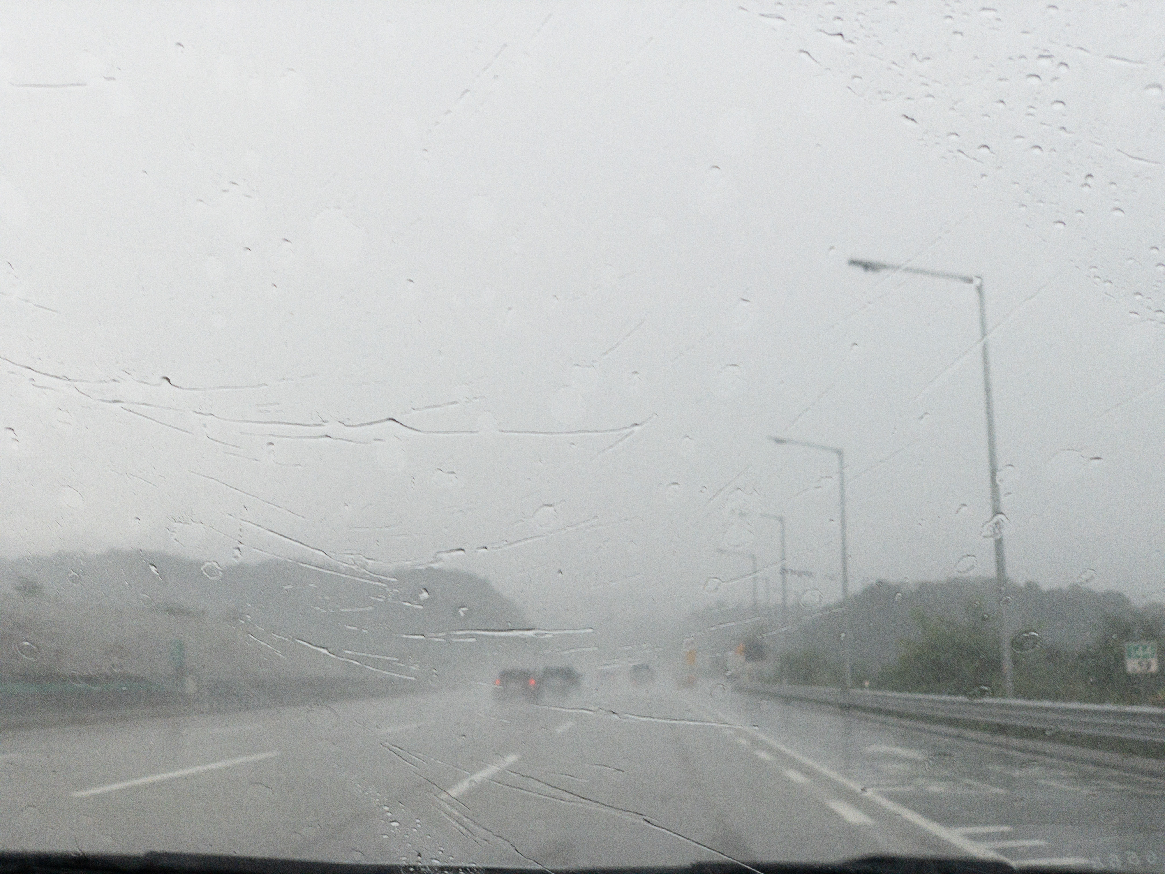 올 때는 반대로 수도권 부분을 운전했습니다. 남부 부분은 태풍 영향으로 앞이 잘 안 보일 정도로 비가 왔어요. '내가 나중 순서로 타기를 잘 했다' 싶었습니다. 추돌 우려가 더 높은 1차로 차들은 아예 비상등을 켜고 가더라고요.