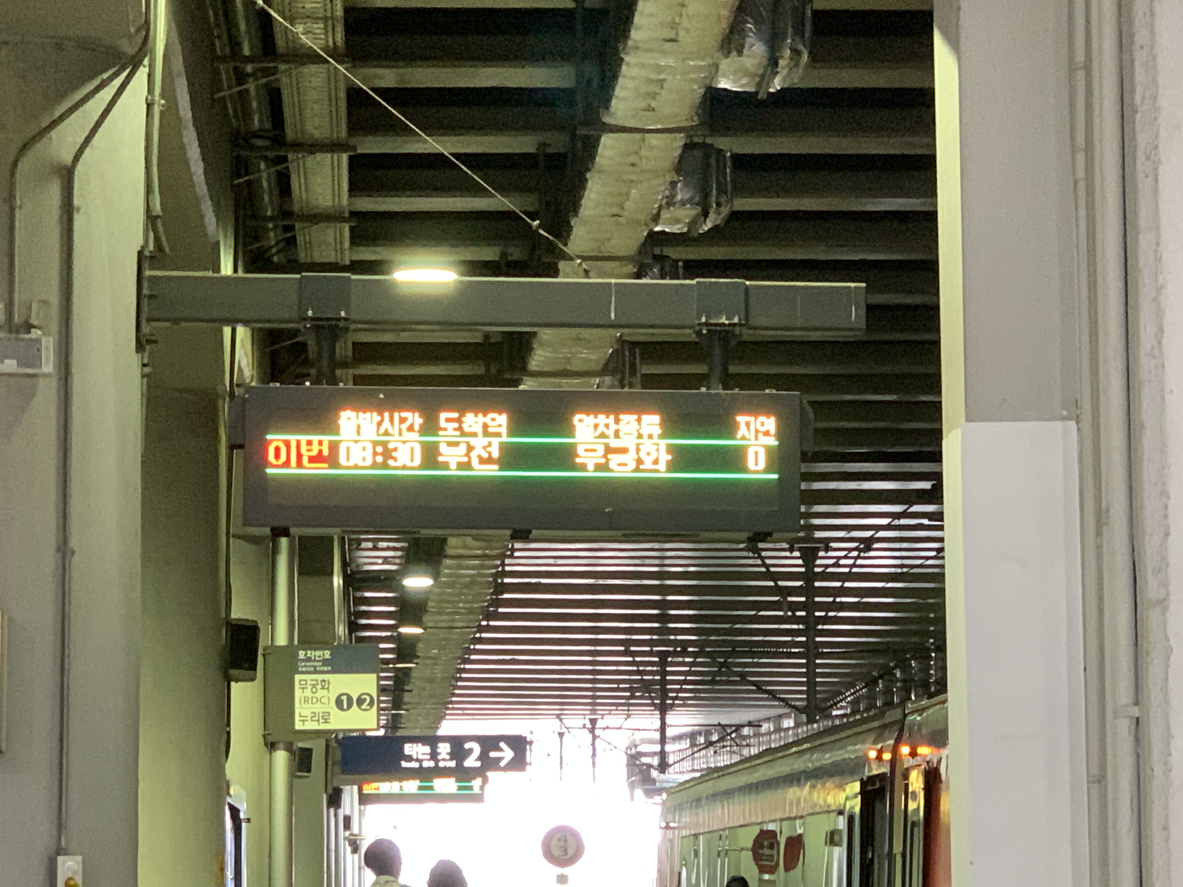 대전행 경부선 무궁화호입니다. 이때까지는 휴가 나올 때 항상 여유롭게 08:16 차를 탔었는데 이번에는 중앙선을 타려면 어쩔 수 없어서 빠듯하게 07:55 차를 타게 되었네요.