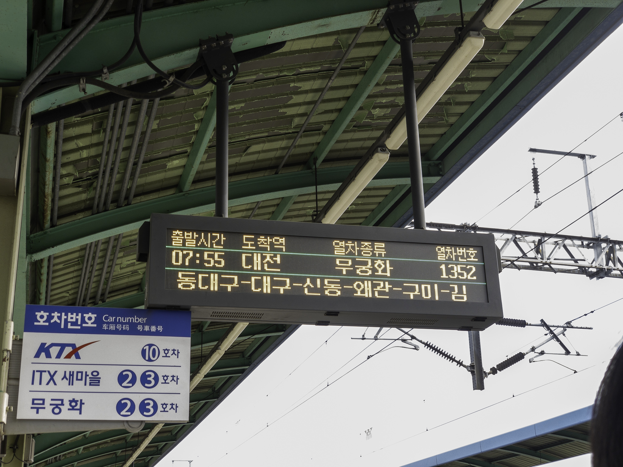 - 무궁화 1352호(경산 07:55 → 동대구 08:04 / 총 9분 / 환승대기 26분 / 경부선)