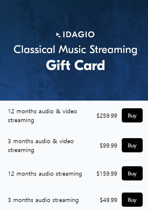 저는 현재 Youtube Premium(Youtube Music)을 이용하고 있지만, 지난 해부터 1년간 IDAGIO를 구독하여 사용했습니다. 이 글은 단순히 기프트카드 관련 포스팅이지만 조만간 심층적인 리뷰도 써봐야겠다는 생각이 드네요.