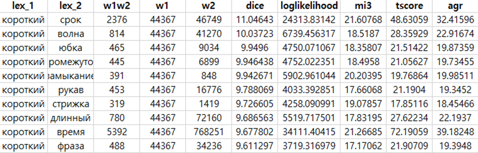 - Matytcina, Marina Stanislovovna, and Tatiana. Grigoryanova. "Statistical Methods for Extracting Collocations from a Text Corpus." 2022 2nd International Conference on Technology Enhanced Learning in Higher Education (TELE). Lipetsk, 2022. 55-57.